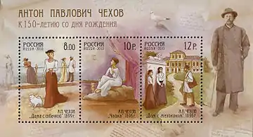 В 2010 году Почта России выпустила два почтовых блока, посвящённых 150-летию Чехова[12].