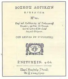 - Пастух разумных овец (греч. Βοσκός λογικών προβάτων, англ. Shepherd of rational sheep, Венеция 1708).