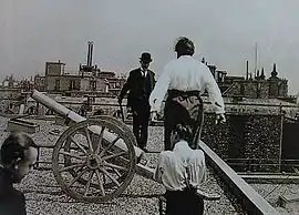 - Часть первая, «Пролог», начинается видом Парижа, снятого с высокой крыши, по которой беспорядочно суетясь, дёргаясь и целясь в разные стороны, катается одинокая бутафорская пушка. В коротком Прологе Рене Клер снял всего двух «актёров». Это одетый «с иголочки» автор музыки, Эрик Сати в компании растрёпанного, в расстёгнутой рубашке автора сценария и художника-постановщика балета Франсиса Пикабиа. Они оба, выпрыгивая откуда-то сверху (в режиме ускоренной съёмки) прямо к лафету, принимались педантично готовить и наводить старую пушку для выстрела в зрительный зал. Это был их оригинальный способ дать третий звонок перед началом спектакля. Наконец, зарядив пушку странным предметом, похожим скорее на толстый и короткий карандаш, чем на снаряд, Сати и Пикабиа исчезают обратно, откуда выпрыгнули, а пушка — лениво и нехотя плюёт своим боевым зарядом прямо в зрителей.