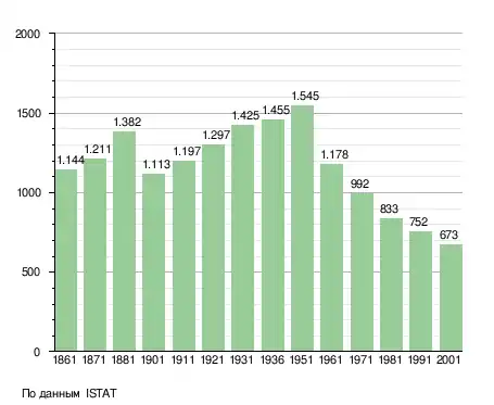 Население составляет 653 человека (2008 г.), плотность населения составляет 82 чел./км². Занимает площадь 8 км². Почтовый индекс — 89040. Телефонный код — 0964.