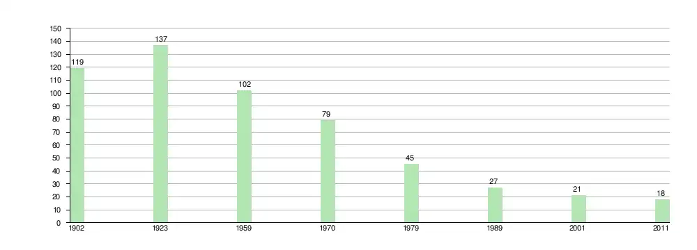 В 1923 году было 26 усадеб. К 2011 году в деревне осталось 10 усадеб.