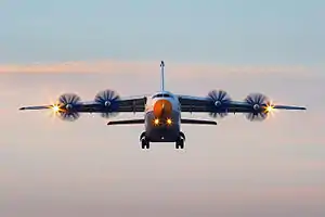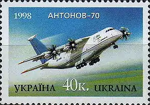 Ан-70 — украинский средний военно-транспортный, среднемагистральный грузовой (в модификации Ан-70-100; первоначальное обозначение — Ан-70Т) и среднемагистральный конвертируемый грузопассажирский (в модификации Ан-70ТК) самолёт[3], разработанный ОКБ О. К. Антонова для замены Ан-12. Проектирование самолёта было начато в 1978 году[4]. Совершил первый полёт в декабре 1994 года[5][6].