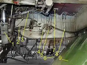 В конечном счёте выбор сделан в пользу обычного убирающегося шасси с управляемой передней стойкой и четырьмя мощными основными стойками с независимой рычажной подвеской колёс. Прочность и энергопоглощение амортизаторов рассчитывались на преодоление «стандартной кочки» высотой до 35 см. Для повышения безопасности основные стойки не имеют замков убранного положения, которые могли бы забиться грязью на взлёте и не открыться. Убранные стойки лежат на створках ниш шасси и при их открытии свободно выпускаются. При отказе гидросистемы шасси выпускается под собственным весом — через тросовую проводку вручную открываются замки створок, опоры выпускаются, затем створки закрываются специальной лебёдкой. При отказе одной из основных стоек самолёт может приземлиться на трёх оставшихся[5].