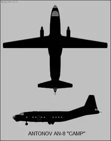 Ан-8 (изделие «П», по кодификации НАТО: Camp — «Лагерь») — советский военно-транспортный самолёт, разработанный в середине 1950-х в ОКБ им. О. К. Антонова. Предназначен для перевозки различных грузов, посадочного и парашютного десантирования ВДВ с придаваемой им техникой и вооружением, а также для перевозки раненых.