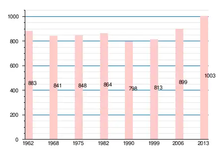 | 883 | 841 | 848 | 864 | 798 | 813 | 899[3] | 942[5] | 1004[6] | 1003[4] |