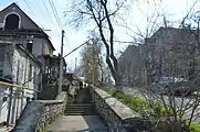 Улица Чесменская пересекает всю застройку по дну балки, достаточно узкая (лишь местами ширина ее достигает 3-х метров) и вовсе недоступна для транспорта. Виной здесь не только крутизна склон, но и то, что по улице проходит мощеная брусчаткой канава для стока ливневых вод. Влево и вправо отходят безымянные переулки, где трудно разойтись двум встречным пешеходам.