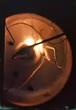 - Охлаждение. Бортовая электроника лунного корабля охлаждалась теплоносителем на основе этиленгликоля, циркулировавшим по замкнутому контуру. Проходя через теплообменник, теплоноситель передавал своё тепло пресной воде, которая испарялась, унося его в космос. Общий запас воды в лунном модуле составлял 338 фунтов (153 кг); работающая в штатном режиме система охлаждения расходовала 6,3 фунта (2,9 кг) воды в час.[36] Полное её израсходование грозило перегревом бортовой электроники и выходом её из строя. Чтобы воды хватило на оставшийся полёт, потребляемый лунным модулем ток должен был быть уменьшен до 17 ампер, что снизило бы её ежечасное потребление до 3,5 фунта (1,6 кг).[36]
