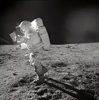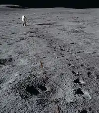 На обратном пути к лунному модулю, астронавты произвели дополнительный сбор лунных образцов.