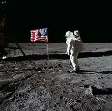 Програ́мма «Аполло́н» — программа пилотируемых космических полётов космического агентства США НАСА, принятая в 1961 году, с целью осуществления первой пилотируемой высадки на Луну, и завершённая в 1975 году. Цель программы была сформулирована президентом США Джоном Ф. Кеннеди в его речи 12 сентября 1962 года[1], и она была успешно решена 20 июля 1969 года, в ходе полёта «Аполлона-11» с высадкой на Луну Нила Армстронга и Базза Олдрина. Всего по программе «Аполлон» были совершены 6 успешных высадок астронавтов на Луну (последняя — в 1972 году). Эти шесть полётов по программе «Аполлон» на данный момент — единственные за всю историю человечества, когда люди высаживались на другом астрономическом объекте.