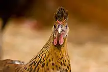 Курица золотисто-чёрно-крапчатой окраски.