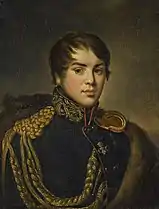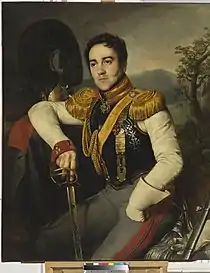 ![]() В. С. Апраксин в форме полковника лейб-гвардии Конного полка. Портрет работы Н. С. Крылова, 1829 год. Эрмитаж | |