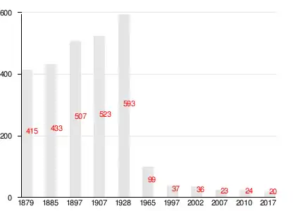 Число жителей по семейным спискам 1879 г.: 191 м. п., 224 ж. п.; по приходским сведениям 1879 г.: 201 м. п., 230 ж. п.;