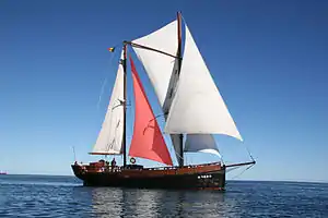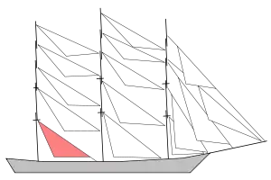 Галсовый угол апселя крепится на палубе судна с наветренной стороны от грота-гика, а шкот проводят через нок бизань-гика, отчего он одновременно становится аэродинамически выгодной распоркой для последнего.