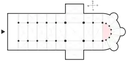 В западноевропейской архитектуре апсидой может называться аналогичная по форме часть внутреннего помещения храма, содержащая алтарную часть, хотя и не являющаяся внешним выступом.