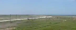 ![]() Вид из самолёта на южную часть Арабатской Стрелки и залива Сиваш | |