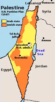 Согласно резолюции № 181 Генеральной ассамблеи ООН от 29 ноября 1947 года о разделе британской колонии Палестина, на её территории должны были быть созданы два независимых государства — еврейское и арабское, а также Большой Иерусалим — территория, подконтрольная ООН. Каждое из государств должно было состоять из трёх территорий, граничащих друг с другом лишь углами.