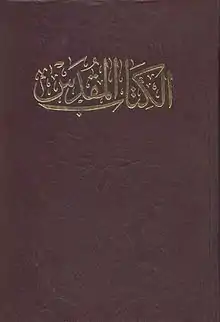 - «Аль-Инджиль аль-Мукаддас. Святое Евангелие Господа нашего Иисуса Христа, записанное четырьмя святыми евангелистами, то есть Матфеем, Марком, Лукой и Иоанном».