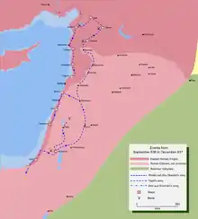 В 640 году арабы завершили завоевание Палестины, после долгой осады овладев Кесарией. Ранее на побережье были захвачены города Сидон (Сайда), Тир (Сур), Библ (Джебейль), Бейрут и Ирка. В начале 640-х годов арабы покорили Триполи (Тарабулус) и Аскалон.