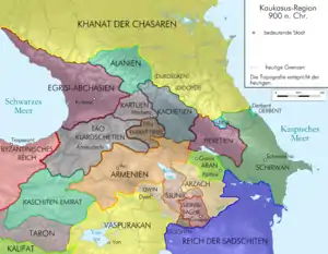 Во второй половине IX века христианские феодальные государства расширились, и Багратиды в Армении и Грузии особенно усилили своё могущество. И Халифат, и Византия теперь опекали их, чтобы обеспечить их поддержку или, по крайней мере, нейтралитет в их борьбе против друг друга. В Армении монархия была восстановлена в 886 году в пользу Багратида Ашота I, который возвёл своего грузинского двоюродного брата Адарнасе IV на престол Иберии[13]. Сильные христианские государства теперь отделили ослабленный эмират Тбилиси от его повелителей, которые проявляли лишь теоретический сюзеренитет над двумя восстановленными царствами.