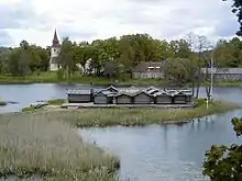 Поселение находилось на низменном островке недалеко от берега, было укреплено подобно городищу. Археологи назвали такие поселения «озёрными замками», т.к. вода надёжно защищала жителей острова от врагов. Подобные «замки» были распространены в этом регионе Латвии, богатым на озёра. Фундамент замка сохранился полностью, но в несколько деформированном виде. Культурный слой содержал 5 слоёв застройки без хронологических разрывов.