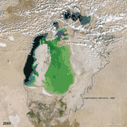 ![]() Аральское море в 1989 году и в 2014 году | |