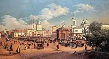 …Одна из просторнейших площадей по бульвару Белого города: входите на оную, и огромность зданий с различными формами архитектуры поражает ваши взоры…