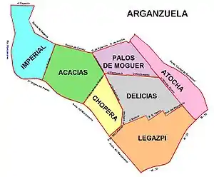 Район делится на 7 подрайонов (исп. barrios):