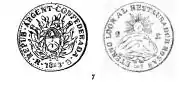 | 2 реала | 6,7 | 25,5 | серебро | Герб Аргентины без солнца | Майское солнце |
