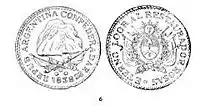 | 2 реала | 6,7 | 27 | серебро | Герб Аргентины | Хуан Мануэль де Росас |