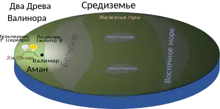 Изначально Арда была плоским миром, континенты которого были окружены огромным океаном Эккайа (кв. Ekkaia), или Вайа (кв. Váya; англ. Encircling Sea «Внешнее море») и разделены Белегаэром (синд. Belegaer; англ. Great Sea «Великое Море») и Разделяющими морями (англ. Sundering Seas). В Первую Эпоху на северо-западе Средиземья находился Белерианд, который был уничтожен в результате Войны Гнева.