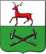 Въ верхней части щита гербъ Нижегородскій. Въ нижней — желѣзные два молота, въ зеленомъ полѣ, положенные крестообразно означающіе находящіеся въ окрестностяхъ города желѣзные заводы[4].