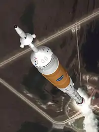 Первая ступень ракеты-носителя должна работать 2,5 минуты, за это время ракета должна подняться до высоты 60,96 км (200 000 футов) и иметь скорость 6,1 М. Вторая ступень поднимает ракету до высоты около 101,4 км (63 мили). Затем включаются двигатели агрегатного модуля, и космический корабль выходит на круговую орбиту на высоте 297,7 км (185 миль) над Землёй. На орбите пилотируемый корабль вместе с агрегатным отсеком или пристыковываются к МКС, или соединяются с лунным модулем для дальнейшего полёта к Луне.