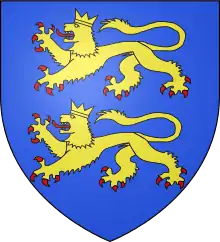 Описание герба: D'azur, à deux lions léopardés d'or couronnés du même armés et lampassés de gueules |