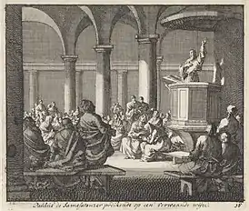 Антиникейская реакция нашла поддержку также в большей части полуязыческого, полухристианского городского населения империи. Несмотря на переход главы государства в христианство, язычники всё ещё численно превосходили христиан. Большое количество людей меняли свои религиозные убеждения, руководствуясь внешними соображениями. Распространено было принятие христианства только номинально, откладывая совершение крещения до момента непосредственной близости смерти или другого подходящего случая. По мнению А. А. Спасского, такому колеблющемуся обществу было ближе арианство. Его идея единого высшего существа была близка современной языческой философии, а учение о Сыне Божием как полубоге роднило его с языческим представлением о богах[64]. Вероятно, зачитывавший своё арианское сочинение в сирийских церквях «Синтагматион» Астерий Софист имел некоторый успех[65], чем доставлял беспокойство Афанасию Великому[66]. Известно, что возродивший в 350-х годах радикальное арианство Аэций Антиохийский был духовником Галла и другом Юлиана Отступника[прим. 7], которого безуспешно пытался склонить к христианству[67].