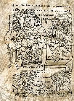 После Никейского собора Арий был сослан в Иллирию с запретом возвращаться в Египет. Однако вскоре императором Константином он был возвращён из ссылки. Сам Константин перед смертью в 337 году принял крещение от епископа-арианина Евсевия Никомедийского[27].