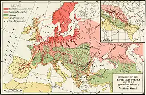 Идея немецкого происхождения «арийцев» была поддержана немецким археологом Густафом Коссинной, который утверждал, что протоиндоевропейские народы представлены культурой шнуровой керамики древней Европы. Эта идея была широко распространена как в интеллектуальной, так и в популярной культуре начала XX века[33].