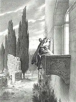 Для подтверждения того, что принцесса является его любовницей, Полинесс зовёт рыцаря прийти ночью под балкон одного дома, чтобы убедиться в этом. Ариодант берёт с собой своего брата Луркания — опытного воина. Он должен был находиться поодаль, но приблизился, чтобы увидеть происходящее собственными глазами. Герцог поднимается по лестнице на балкон, ласкает Далинду, и они удаляются в покои. Введённый в заблуждение итальянский рыцарь в отчаянии покидает двор и бросается со скалы в ирландское море, а его брат публично обвиняет Гиневру в распутстве. Король решает провести дознание, в том числе среди слуг, а также назначить поединок между Лурканием и рыцарем, который вступится за её честь.