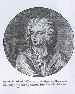 В 1697 по приглашению Королевы Пруссии Софии Шарлотты, переехал в Берлин. Королева покровительствовала поэзии и искусствам, и особенно интересовалась музыкой. У неё на службе Ариости написал, а также стал соавтором многих сценических произведений для берлинского двора. Он жил в Берлине и оставался придворным композитором вплоть до 1703.