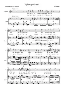 Ноты арии Царицы ночи с украинским переводом текста, выполненным Евгением Дробязко.