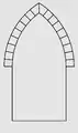 - ланцетоподобная (копьеподобная) — образована двумя дугами, которые соединяются под углом и имеет формы стрельчатой равносторонней, стрельчатой стиснутой, стрельчатой плоской.