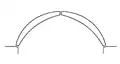 - двуцентровая — дуга, образованная из двух дуг одного и того же радиуса, пересекающихся в замке под тупым углом.