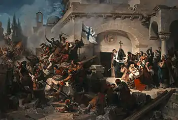 События 1866 года, когда 15 тысяч турецких солдат штурмовали Аркади, и самопожертвование защитников монастыря сделали монастырь в Греции символом борьбы за независимость, получившего имя «Холокост Аркади»[4][5][6].