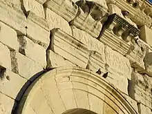 Надпись на антаблементе, находящаяся под посвящением, указывает на имя донатора Юлия Руфуса (C. Julius Rufus) и его родословную. Она дублируется с обеих сторон сооружения и свидетельствует об аристократическом сознании Руфуса и закреплении статуса его семьи в качестве главы города. Юлиус Гедемо, дед Руфуса, был первым членом семьи, получившим римское гражданство, вероятно, благодаря Юлию Цезарю во время Галльских войн или вскоре после их окончания. Руфус, римский гражданин в третьем поколении, является первым представителем рода, взявшим полностью римское имя и отказавшимся от прозвища кельтского происхождения: этот факт подчёркивает прогрессивный курс на латанизацию, выбранный этой видной галльской семьёй. Он также известен как священник Рима и Августа благодаря посвящению, найденному в амфитеатре трёх Галлий античного Лугдуна (современный Лион), указанном здесь как confluentem (в Лугдуне находился алтарь трёх Галлий, воздвигнутый Друзом-Старшим в 12 году до н. э., где раз в год встречались представители городов трёх Галлий).