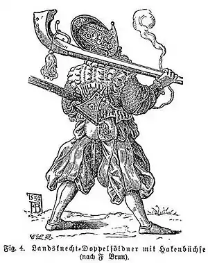 - Функен Л., Функен Ф. Средние века. Эпоха ренессанса: Пехота — Кавалерия — Артиллерия / Пер. с франц. М. Б. Ивановой. — М.: ООО «АСТ»; Астрель, 2004. — 146 с.: ил. — Серия «Энциклопедия вооружения и военного костюма». — ISBN 5-17-014796-1.