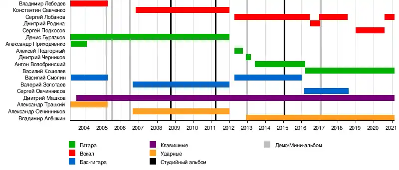 | Дмитрий Черников | гитара | 2012—2013 | экс-The Arrow, экс-Trine Aspect |