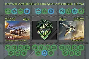 - 4 июня 2018 года Банк России выпустил в обращение памятную монету номиналом 25 рублей «Армейские международные игры»[9].
