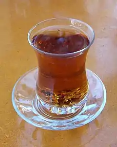 Чай имеет особое значение для азербайджанцев. В любом азербайджанском доме гостю первым делом предлагают чай. Всегда с чая начинается застолье, им же оно и заканчивается[5]. Национальной посудой для питья чая является стакан армуду, который по форме напоминает грушу и переводится так же, а название «богмалы» переводится как «стеснённый» и обозначает место, напоминающее женскую талию[3]. Стаканы доверху не наполняются: на 1-2 сантиметра сверху оставляется место, которое часто бывает выделено ободком. Это расстояние в народе называют «додаг йери», что буквально переводится как «место для губ»[4].