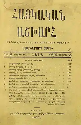 В Баку действовала "Библиотека армянского человеколюбивого общества" располагающаяся напротив 2-ой женской гимназии[48], само же армянское общество располагалось в здании в котором ныне расположена Школа №1 им.Намика Ахундова