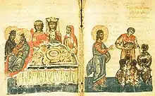 Евангелие было написано и иллюстрировано в 1272 году[29] в городе Сис Киликийской Армении по заказу царицы Керан. Писец Аветис. Рукопись хранится в Иерусалиме, в церкви св. Акобянц[30]. Имя миниатюриста неизвестно. Одна из главных миниатюр изображает царя Левона III, царицу Керан вместе с наследниками. Миниатюра, кроме высокого художественного значения, имеет также и историческую ценность. Миниатюры, изображающие разные эпизоды жизни Христа («Рождество», «Распятие», «Воскрешение Лазаря», и т. д.), сохранив канонические художественные подходы, объединяют лучшие традиции киликийской школы второй половины XIII века.