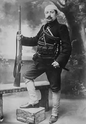 ![]() Фидаи из Армянской Революционной Федерации под своим стягом с надписью «Свобода или смерть». | |